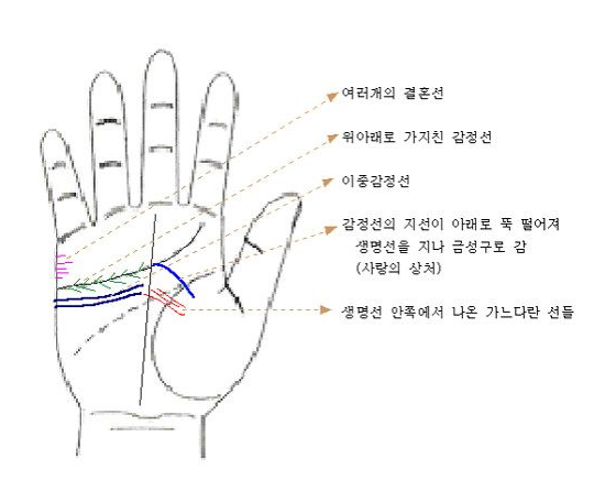 정말로 손금감정을 해보면 이런 선을 가진 사람들이 연애도 많이 했더군요. 상처도 있구요.