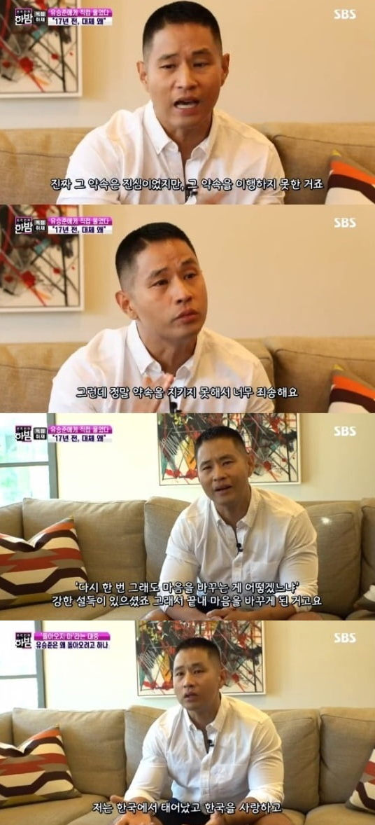 유승준은 과거를 뉘우치고 있다고 말하고 있습니다.