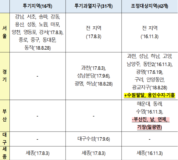 이미 정부에서 좋은 지역은 투기지역, 투기과열지구, 조정대상 지역으로 죄다 분류를 친절하게 해 놔 줬습니다.