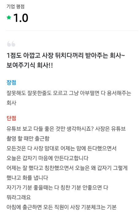 분노가 느껴지는 기업 리뷰입니다.